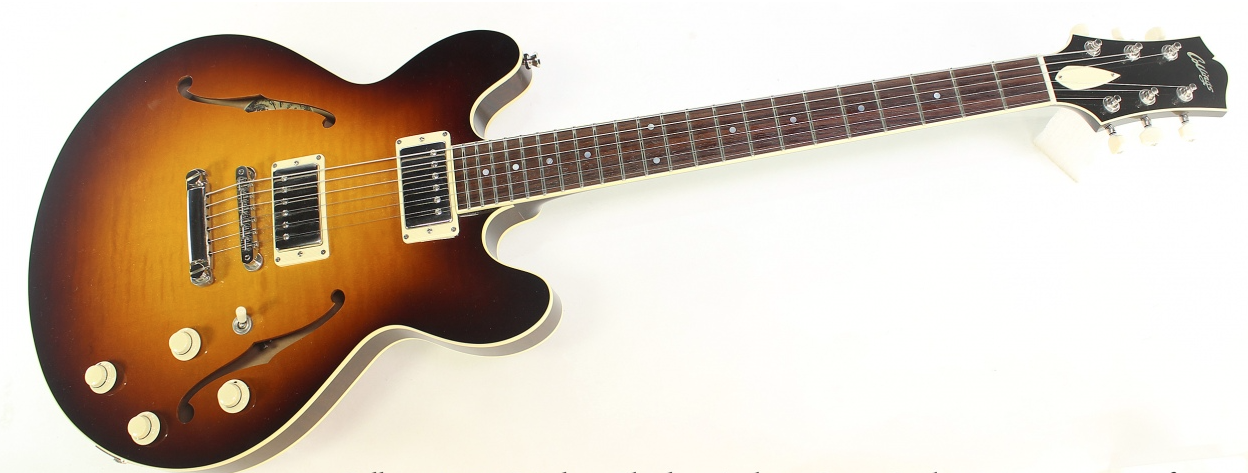 - 외관: 세미-홀로우 바디, 메이플 톱과 마호가니 백 & 사이드, 클래식한 더블 컷어웨이 디자인.