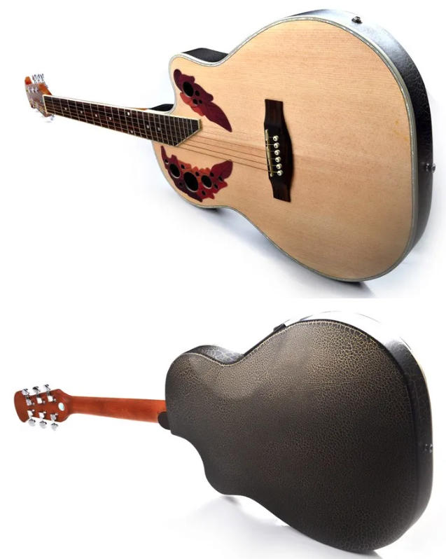 - 외관 : 오베이션 기타는 독특한 고유의 형태와 디자인으로 인해 다른 어쿠스틱 기타와 확연히 구별된다. 플라스틱을 측후판으로 사용하여 특유의 반구 모양 디자인이 특징이다.